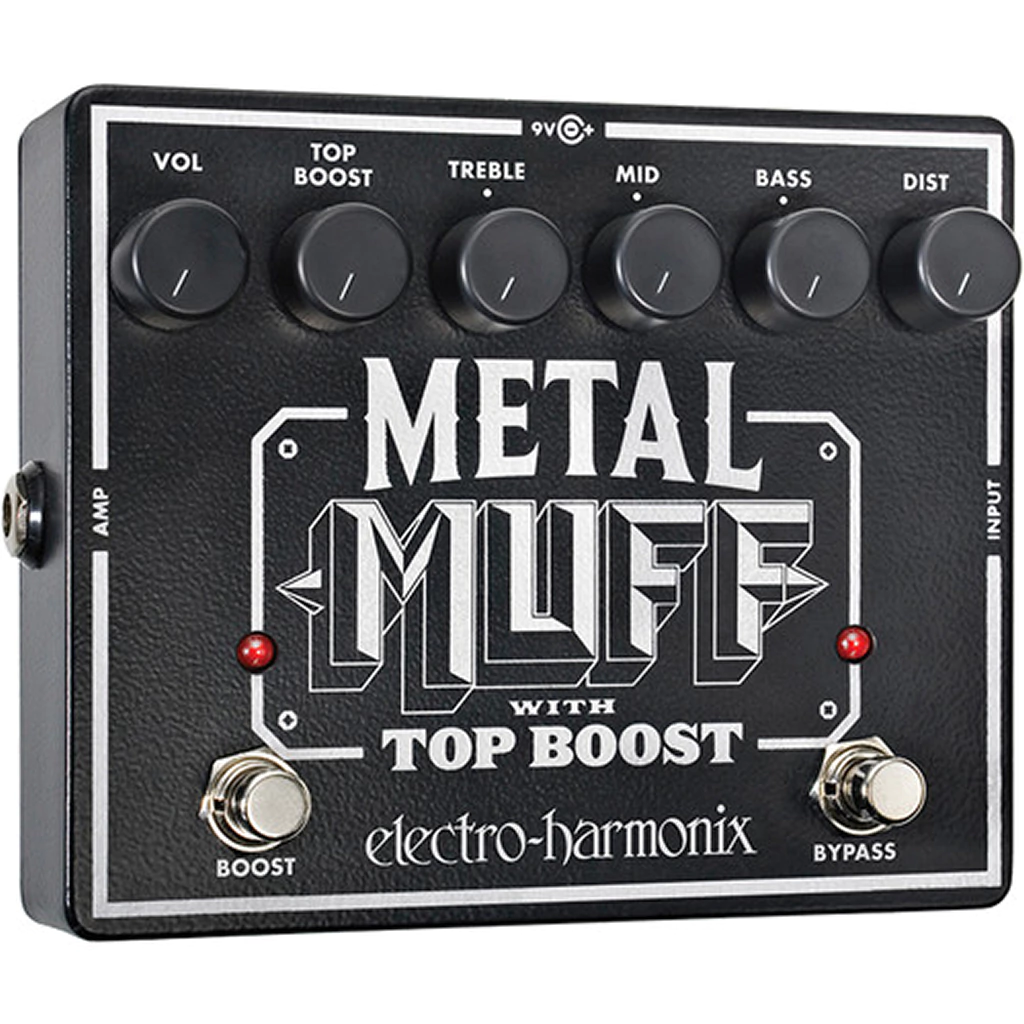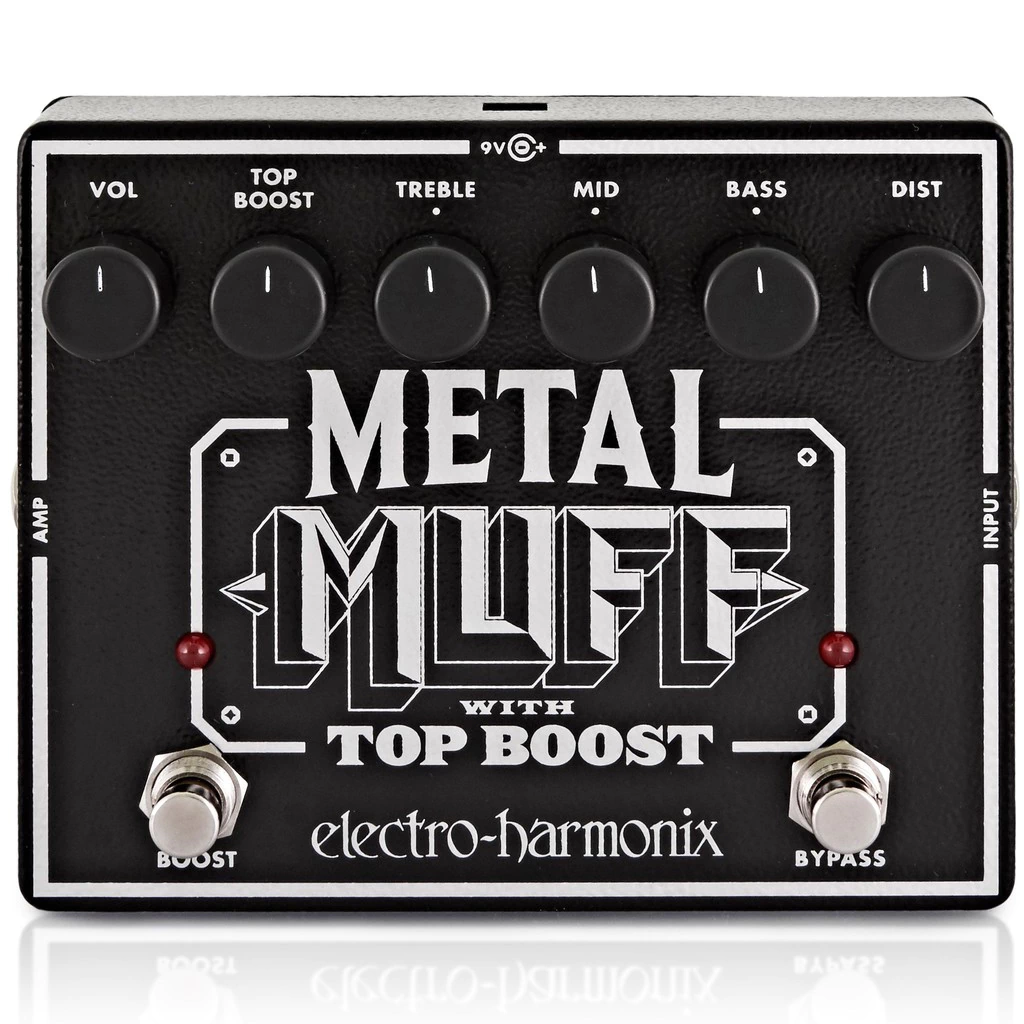 El Electro-Harmonix Metal Muff with Top Boost es un pedal de distorsión diseñado para entregar el sonido metal definitivo, con una combinación demoledora de ganancia extrema, definición y control tonal avanzado. Su ecualizador de tres bandas permite esculpir los medios con precisión quirúrgica y potenciar graves profundos y agudos afilados, todo manteniendo una distorsión rica y articulada incluso en configuraciones agresivas.
