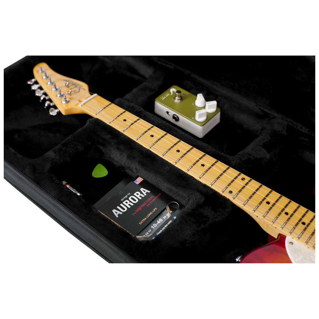 El estuche ligero Roland Rigid EPS Foam para guitarras eléctricas es una combinación entre un estuche rígido y una funda de transporte. El exterior está recubierto de nailon resistente, mientras que el interior está fabricado con espuma EPS densa. Un interior suave y afelpado protege la guitarra de arañazos y otros daños, mientras que la espuma sujeta el mástil. Dos compartimentos para accesorios permiten guardar equipo adicional. El estuche se transporta fácilmente gracias a su asa de transporte de nailon o a su cómoda correa de hombro extraíble.