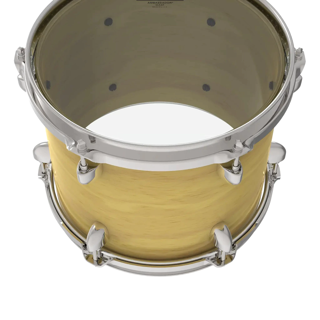 El parche Ambassador® Clear ofrece un sonido abierto, brillante y resonante con gran ataque. Fabricados con una sola capa de película transparente de 10 milésimas de pulgada, se utilizan como parches de bateo y son el estándar de la industria en parches resonantes para toms.