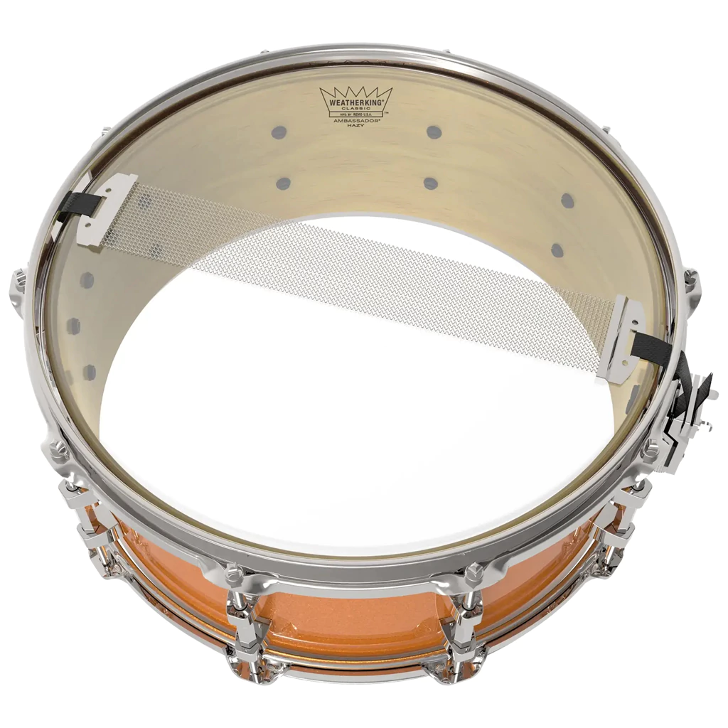 El Ambassador® Hazy Snare Side ofrece tonos resonantes abiertos, el estándar de la industria para cajas resonantes. Fabricados con una sola capa de película de 3 milésimas de pulgada, los parches Ambassador Hazy Snare Side ofrecen un equilibrio perfecto de frecuencias altas, medias y bajas para todo tipo de cajas.