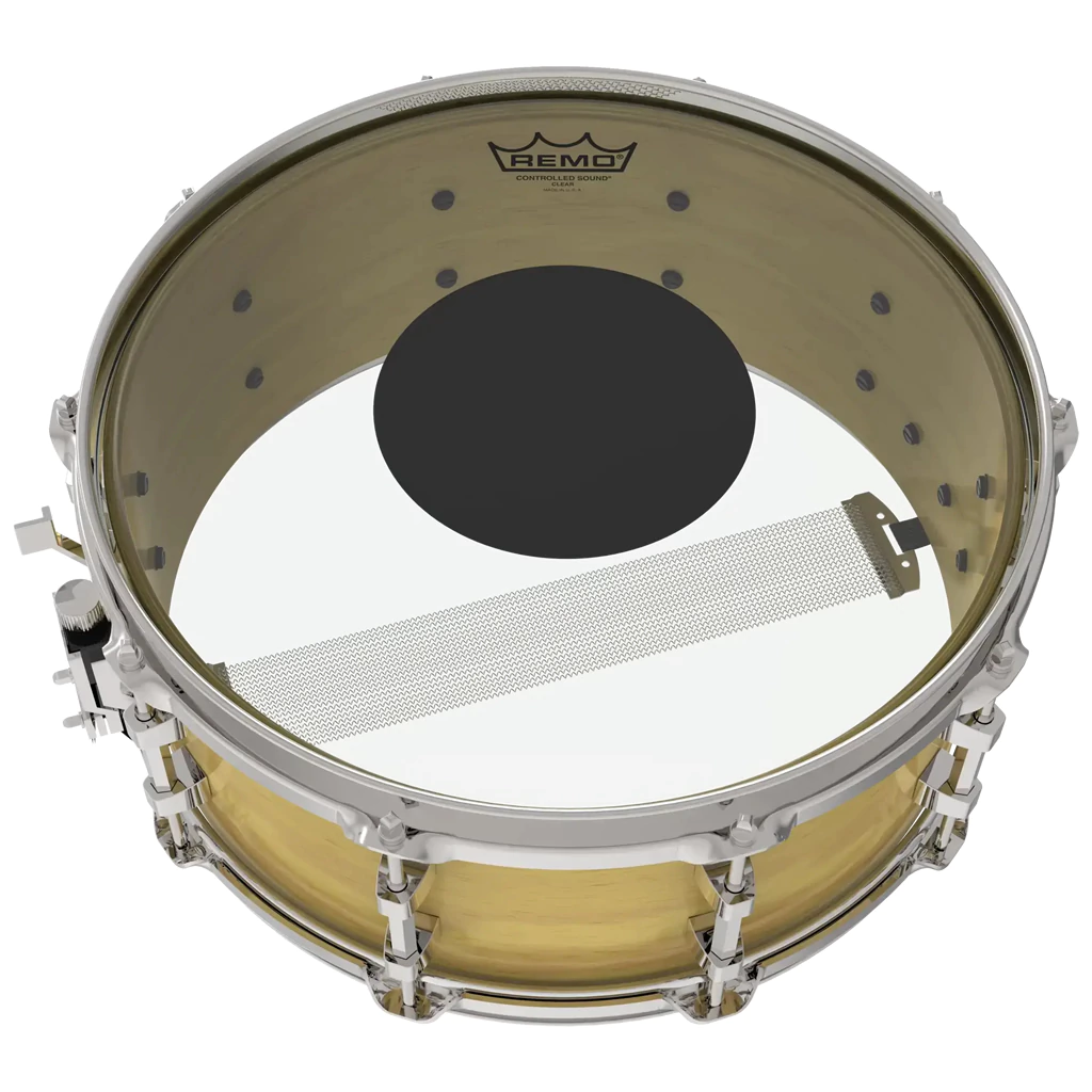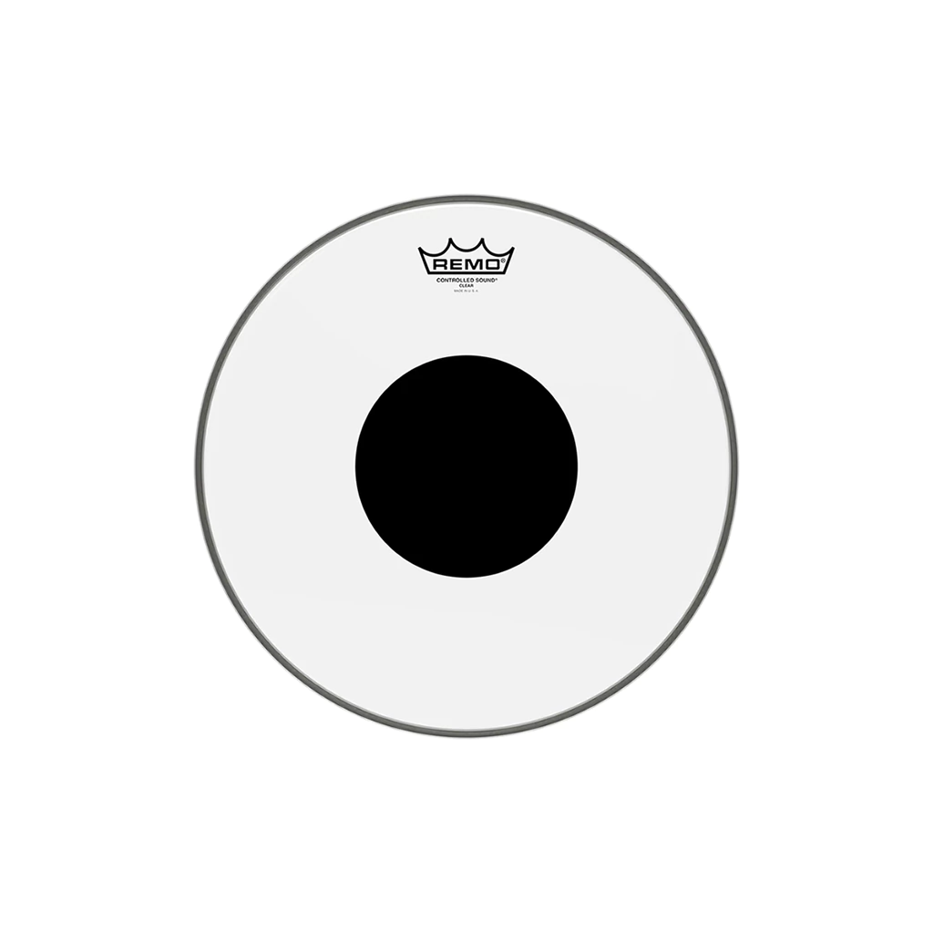Los parches Controlled Sound® Clear Top Black Dot™ ofrecen tonos medios enfocados con un ataque bien definido. Fabricados con una sola capa de película transparente de 10 milésimas de pulgada y un punto negro superior de 5 milésimas de pulgada, los parches Controlled Sound Clear Black Dot™ proporcionan un ataque y una proyección articulados con mayor durabilidad. La zona exterior del parche ofrece un tono y una sensibilidad mejorados, mientras que el punto negro central aumenta la durabilidad y el control de armónicos.
