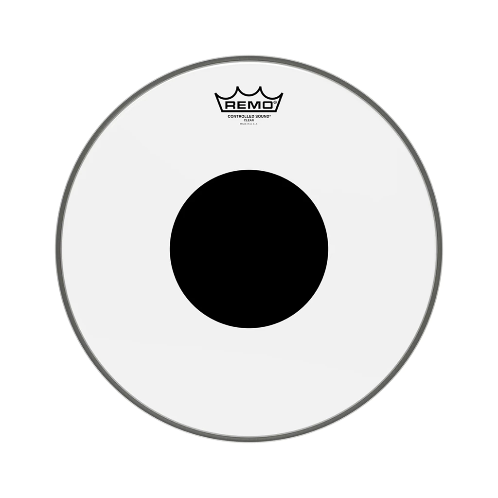Los parches Controlled Sound® Clear Top Black Dot™ ofrecen tonos medios enfocados con un ataque bien definido. Fabricados con una sola capa de película transparente de 10 milésimas de pulgada y un punto negro superior de 5 milésimas de pulgada, los parches Controlled Sound Clear Black Dot™ proporcionan un ataque y una proyección articulados con mayor durabilidad. La zona exterior del parche ofrece un tono y una sensibilidad mejorados, mientras que el punto negro central aumenta la durabilidad y el control de armónicos.