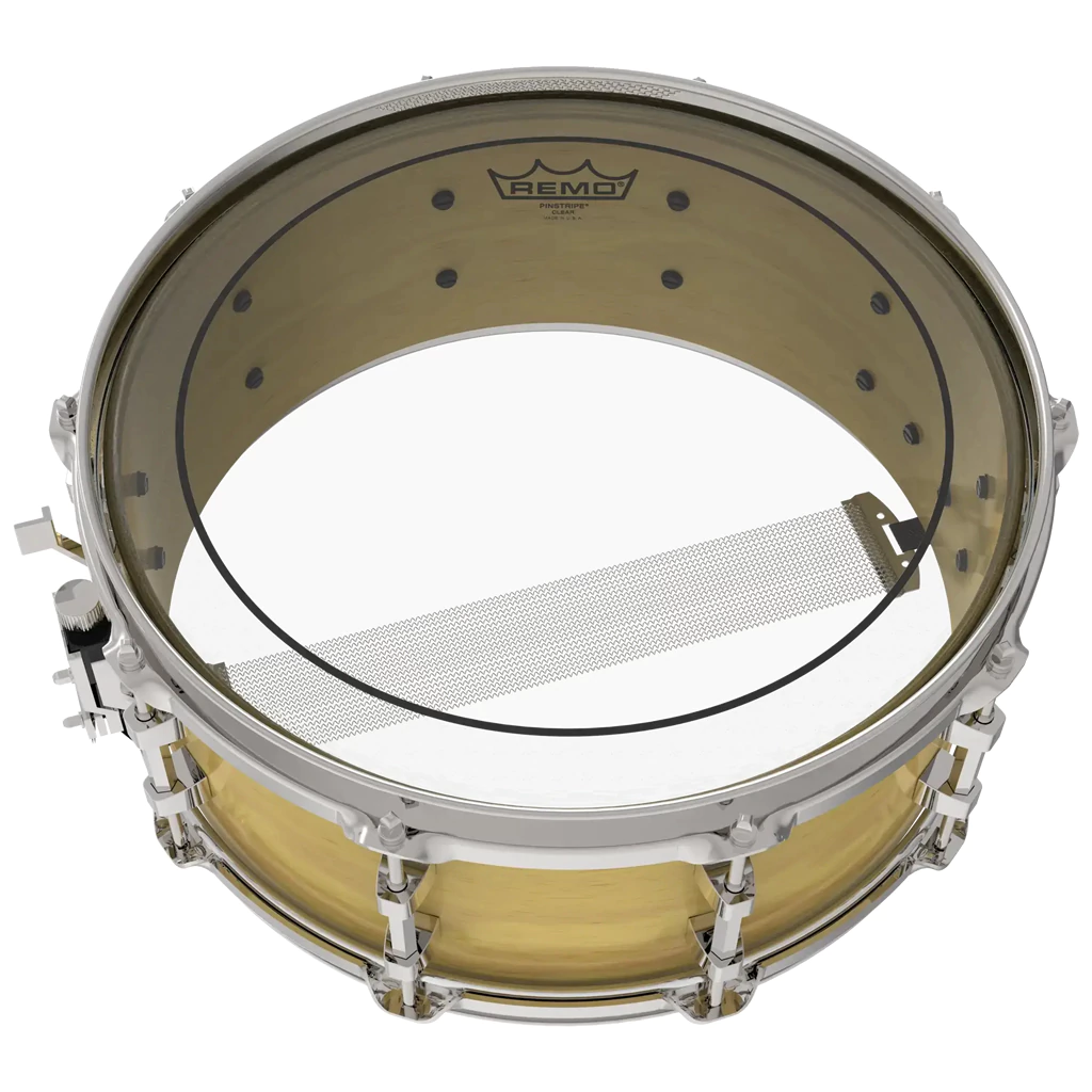 Los parches Pinstripe® Clear ofrecen tonos medios con graves potentes y mayor durabilidad. Fabricados con dos capas de película transparente de 7 milésimas de pulgada, los parches Pinstripe Clear incorporan un agente reductor de armónicos entre ellas, lo que proporciona control de armónicos con mayor ataque. La serie Pinstripe es una de las más populares del mundo.
