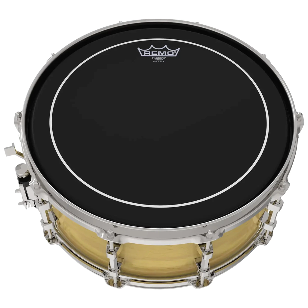 El parche Pinstripe® Ebony® ofrece tonos graves enfocados con sustain controlado. Fabricados con dos capas de película de ébano de 10 milésimas de pulgada y películas transparentes de 5 milésimas de pulgada, los parches Pinstripe Ebony incorporan un agente reductor de armónicos entre las dos capas, lo que proporciona control de armónicos, mayor ataque y durabilidad.