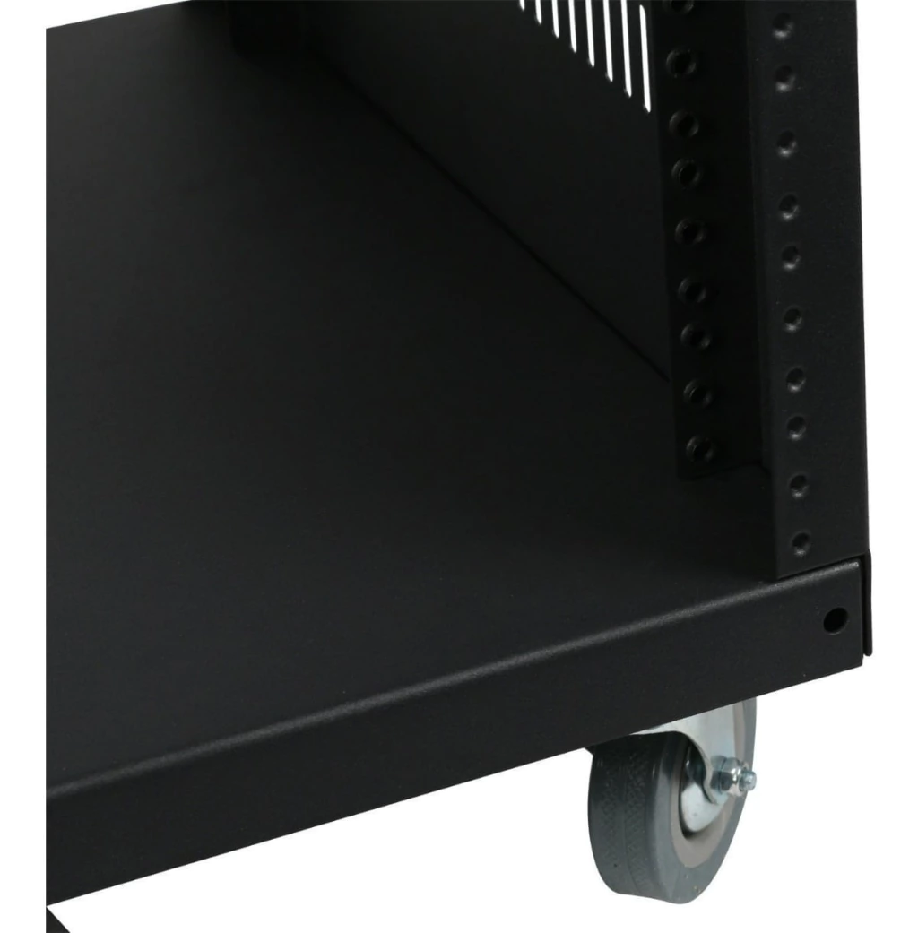Los racks universales para equipos SRK de 19" están disponibles en cuatro tamaños para adaptarse a cualquier configuración de equipo: 8 (SRK8), 12 (SRK12), 16 (SRK16) y 21 (SRK21). Todos los racks están fabricados en acero de alta resistencia con paneles laterales completamente cerrados, así como rieles frontales y traseros. Los paneles laterales también están perforados para ventilación pasiva. Los racks están montados sobre cuatro ruedas de 75 mm (3") con frentes bloqueables que soportan un peso de hasta 136 kg (300 lb) (204 kg sin ruedas). Cada rack incluye un panel ciego de un solo espacio. Su exclusivo diseño de barra de soporte de acero permite que estos racks sean compatibles con roscas de EE. UU. y Europa, con ambos juegos de tornillos incluidos.