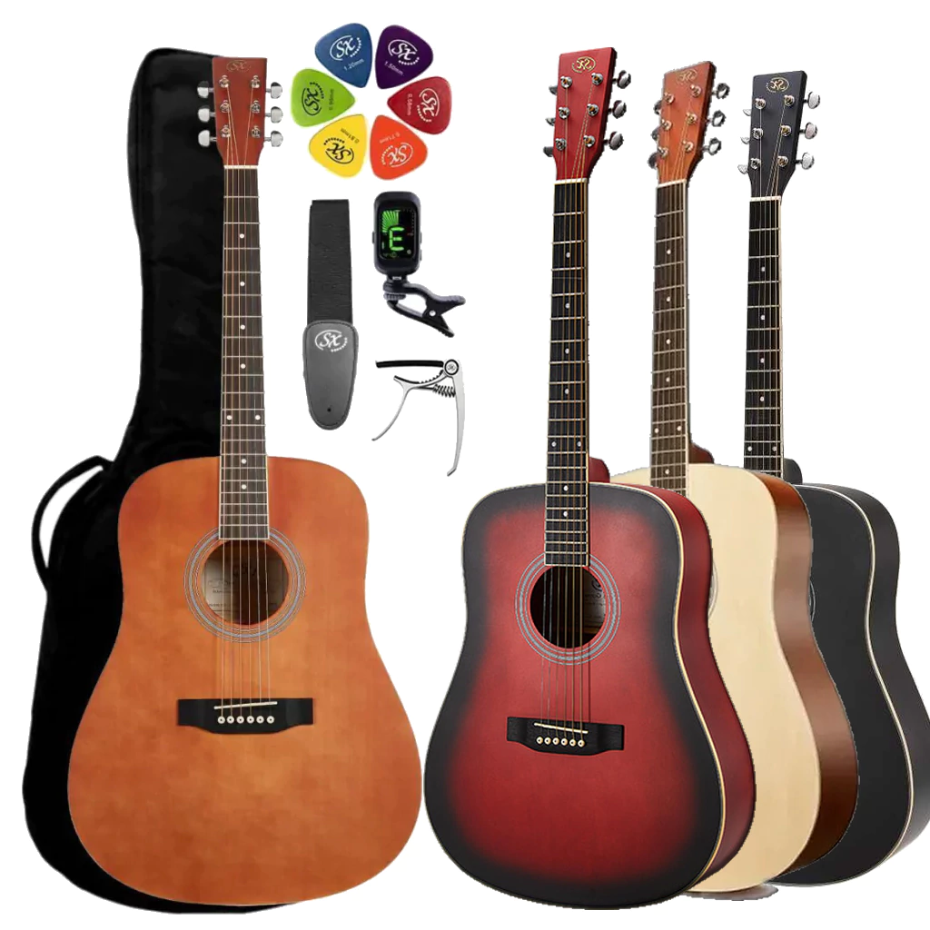 La guitarra acústica SD-104 de SX cuenta con un cuerpo dreadnought estándar para un gran sonido y es perfecta para el jugador principiante.