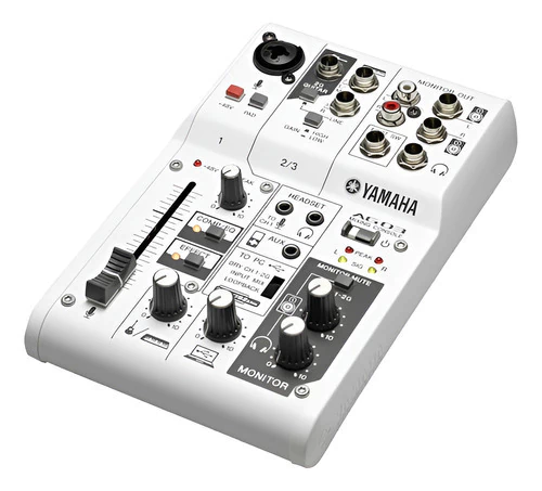 El Yamaha AG03 MK2 es una mezcladora de 3 canales e interfaz de audio USB, diseñada especialmente para aplicaciones de streaming en vivo, creación de contenido y podcasting. Se distingue por su sonido de alta calidad, sus entradas flexibles y la función de bucle (loopback) que permite mezclar múltiples fuentes de audio de manera intuitiva.