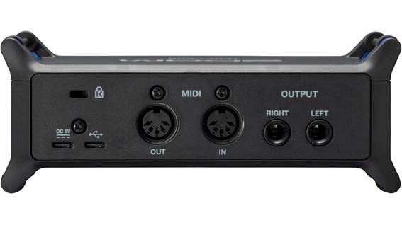 Gracias a su diseño compacto, el UAC-232 se puede transportar y colocar fácilmente en cualquier lugar. Puede colocarlo vertical u horizontalmente, o incluso montarlo en un soporte de micrófono con las correas de velcro incluidas. La unidad se alimenta por bus a través de su ordenador o requiere una fuente de alimentación externa USB-C (disponible por separado) si se utiliza con un dispositivo iOS con Lightning.